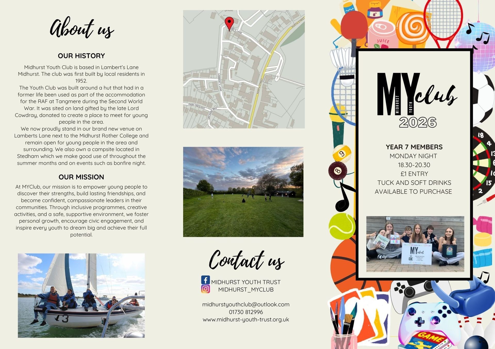 Midhurst Youth Club is a safe space for young people to enjoy. We have some fantastic facilities including outdoor sports and activities, PC's and gaming consoles, arts and crafts and much more. We also organise trips and excursions which have in the past included bowling, Thorpe Park and Playzone, and we have lots of upcoming trips to look forward to.