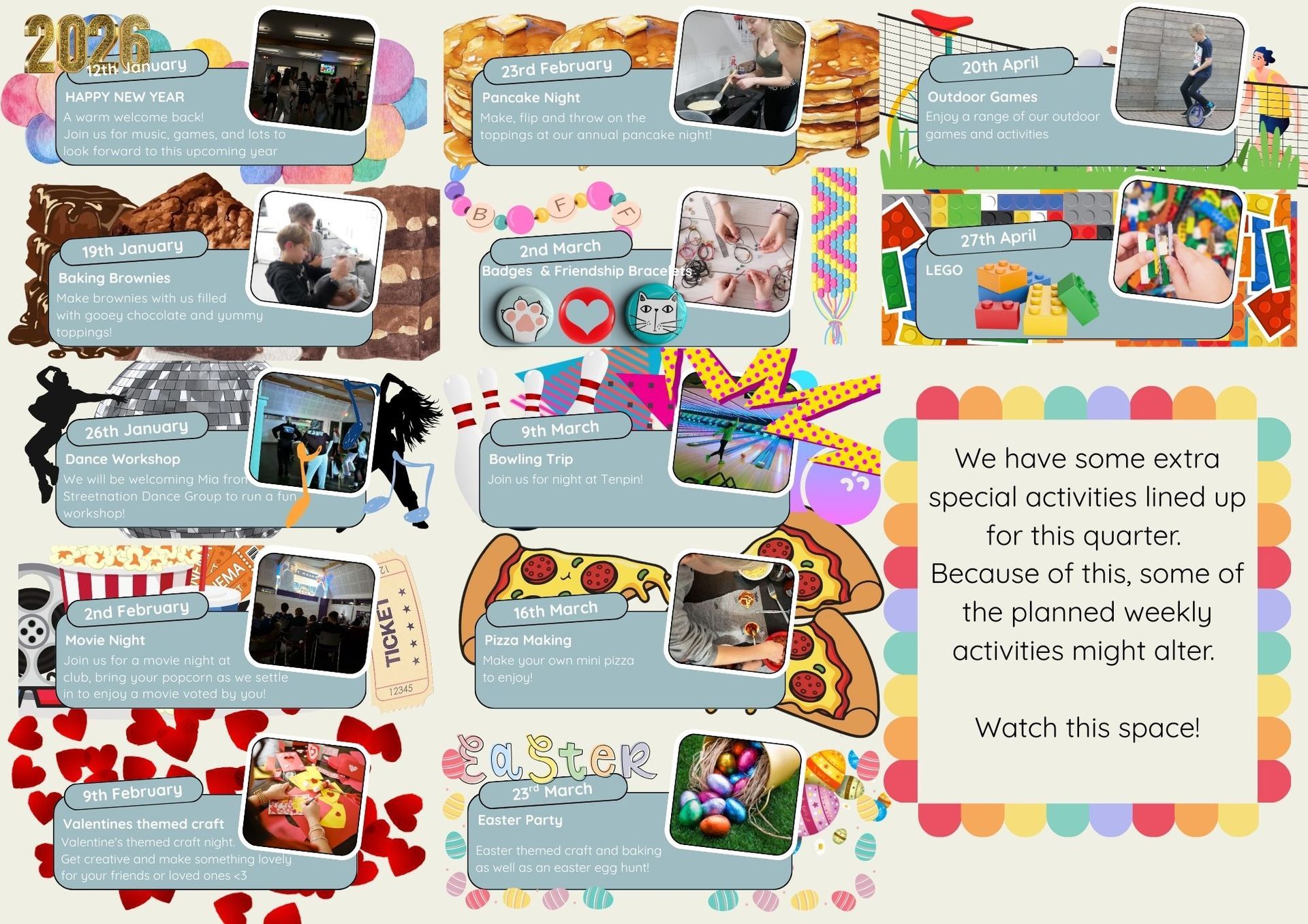We have listened to your ideas and requests throughout the term and have collated a range of activities and trips suited to you.